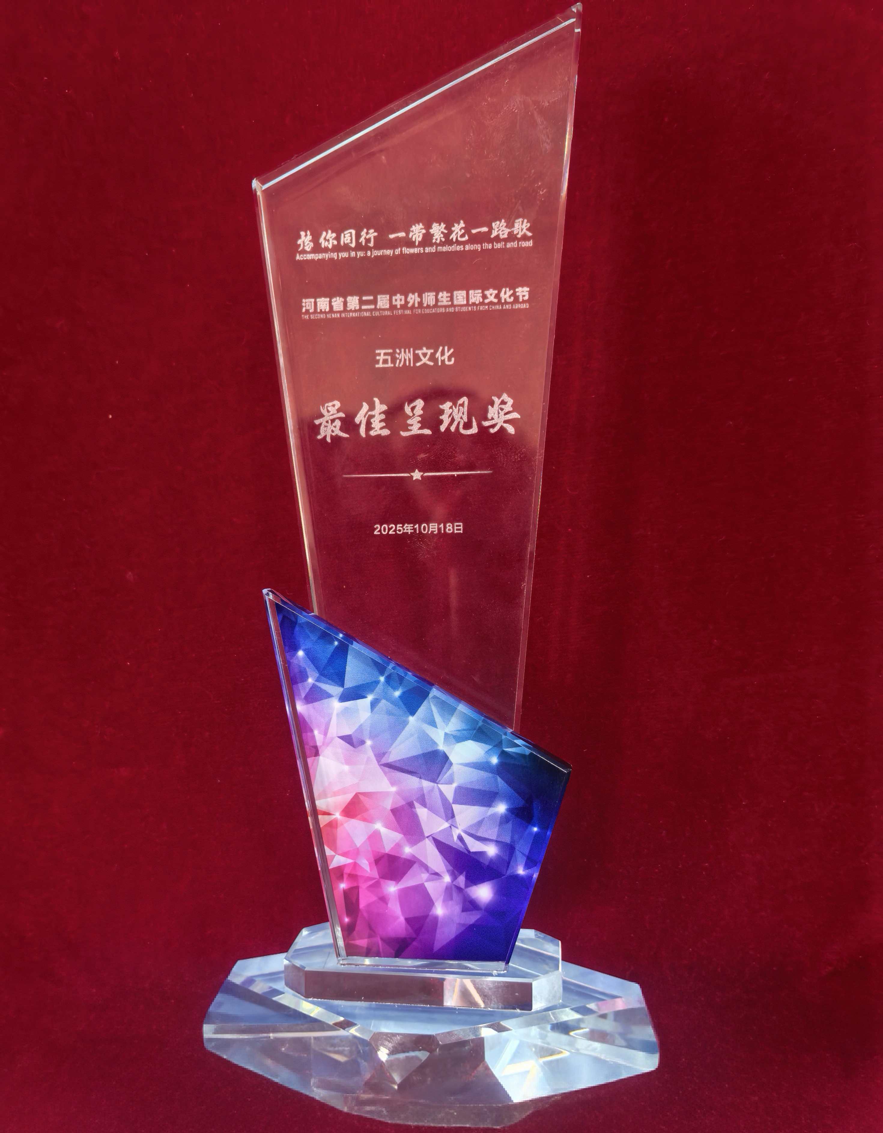 作为一场彰显文化互鉴、民心相通的多元文化盛会,本次国际文化节为各国师生搭建了展示风采、沟通交流的广阔平台。我校因文化展示环节工作出色、参与表现优异,被授予“五洲文化最佳呈现奖”。